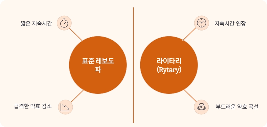 ✔ 레보도파/카비도파이지만 기존 약보다 온(On) 유지력 우수